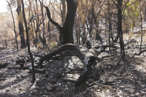 1月4日,在澳大利亚南澳大利亚州阿德莱德山地区,树木在山火过后被烧得焦黑。