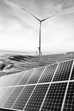工人在河北省张家口市宣化县中电投新能源基地发电场安装风电设备(1月2日摄)。2014年,我国风电和太阳能并网装机已超1.2亿千瓦,预计发电量达1750亿千瓦时。