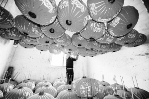 1月7日,义乌市官端前村一家灯笼生产企业的工人把做好的灯笼挂起来晾干。临近农历新年,作为国内知名的节庆灯笼批发销售地浙江义乌进入忙碌的生产销售季节。