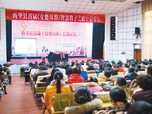近日,由西华县妇联、县教体局联合主办的首届《女德母教》智慧教子之道公益论坛在县委礼堂举行。县妇联干部、县女企业家协会成员、幼儿教师及家长参加了论坛,现场500多名妇女受益。图为论坛现场。(记者 张猛 摄)