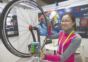 2015国际消费电子展上的中国小微企业 1月6日,在美国拉斯韦加斯举行的2015国际消费电子展上,一家企业展示一款安装在自行车上的运动传感器。该装置可通过手机蓝牙同步运动数据。2015国际消费电子展设立了中国专区,数十家中国小微企业入驻。中国小型电子产品精致实用,科技含量高,受到众多观展者欢迎。
