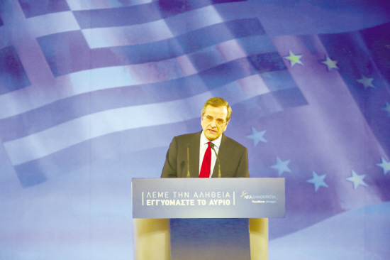 1月10日,希腊总理、主要执政党新民主党领导人萨马拉斯在雅典发表该党竞选政策演说,为即将举行的议会选举造势。