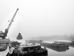 近段时间来,周口港一直处于忙碌之中,周口益海粮油从国外进口的大豆从连云港经货船运到周口港,再日夜不停地转运到工厂。图为港口内待转运的货船以及正在从货船上卸载到大卡车上的场景。