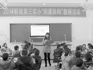 近日,郸城县第三实验小学举行数学“同课异构”教研活动,探讨教学模式,展现教学风格,打造高效课堂。交流会上,任课老师与大家分享了课堂设计想法与感悟,相互交流评议、对比分析、互助引领,并达成教研共识。一致认为,教师要结合教材、学生、教法等要素不断改善教学行为,科学创新,提高课堂效率,形成风格,提炼适合三实小特色的“同课异构”教研模式。(安稳 摄)