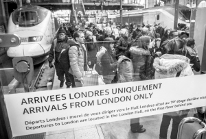 1月17日,在巴黎北站,乘坐欧洲之星列车前往伦敦的乘客因隧道事故返回巴黎。新华社发