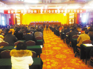 县委书记杨永志主持会议并讲话。县委副书记、县长马明超代表县委常委会全面总结、安排部署经济工作。县领导张帆、苏中林、祁永亮、宋志军、李飞、朱在红、谢留定、王智华、张文峰及县委委员、候补委员出席会议。