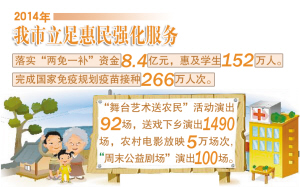 立足惠民强化服务。继续加强对义务教育阶段经费支持,增加公共卫生投入,不断丰富市民文化生活,食品安全监督管理进一步加强,便民服务扎实推进,中心城区民生环境得到有效改善。