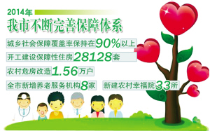 完善保障体系。坚持全覆盖、保基本、多层次、可持续的方针,初步建成了覆盖城乡居民的社会保障体系,城乡社会保障覆盖率保持在90%以上。
