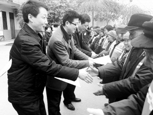 近日,郸城县开展冬季送温暖活动,向全县环卫工发放了30多万元的物品,提高环卫工人的待遇和保障水平,在全社会营造人人尊敬环卫工人、携手共建美丽郸城的浓厚氛围。图为发放物品现场。(记者 卢好亮 摄)