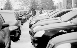 1月20日,有购车意向的市民在车辆停放处查看准备拍卖的公务车车况。沈阳市浑南区第三批涉及全区70余个行政事业单位的106台公务用车,将于1月23日委托沈阳产权交易所进行网上竞拍,车型包括奥迪、丰田等品牌。据悉,2014年,沈阳产权交易所共处置沈阳行政事业单位车辆305辆。新华社发
