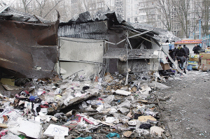 这是1月19日在乌克兰东部顿涅茨克地区拍摄的一处遭到炮击击毁的房屋。目前乌克兰政府军和民间武装围绕顿涅茨克机场的争夺战日趋激烈。顿涅茨克机场在乌克兰东部交战地区具有重要战略地位。新华社发