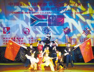 1月20日,运动员在南非约翰内斯堡举行的中国武术协会南非文化交流演出上表演。当日,中国武术协会南非文化交流演出在南非最大城市约翰内斯堡举行。参与此次演出的12名武术运动员由中国武术协会从全国各地优秀运动员中选出,均为全运会以及国内武术锦标赛获奖运动员。当天精彩的演出吸引了众多旅南侨胞和当地观众前来观看。