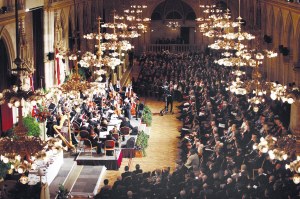 1月20日,2015维也纳中国书画新年音乐会在维也纳市政厅举行。指挥家米夏埃尔·托马舍克携奥地利莱哈尔交响乐团同中国民乐如梦令国乐坊、男高音歌唱家范竞马等轮番登场,配合书画家现场挥毫表演,上演了一场中西合璧的文化盛宴。