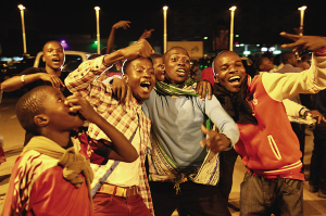 1月24日,在赞比亚首都卢萨卡,执政党爱国阵线的支持者在获知总统选举结果后庆祝。