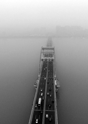 1月26日,杭州钱塘江上雾霾浓重,已经基本看不到江对岸的样子。