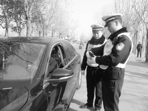 近日,市公安局金海分局交管巡防大队民警在颍河路对过往机动车驾驶员认真询查。教导员赵春来说,去年以来,他们坚持把治理交通违法行为工作常态化,在辖区重点查处酒后驾驶、不按规定车道行驶、涉牌涉证等交通违法行为,消除交通隐患、严控交通秩序,取得了良好效果。