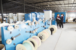 昨日,位于周口高新区的阳光电缆有限公司车间,工人正在忙碌地工作。光缆电缆生产是周口高新区的主导产业之一。该区计划在两三年内,再引进3家光缆电缆龙头企业,成为长江以北最大的光缆电缆生产基地。(记者 王映 摄)