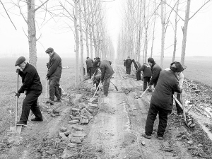 2月6日,商水县魏集镇苏童村共产党员正在整修龚庄—汾河故道路段。苏童村党支部加强村级基层党组织建设,不断组织党员为群众做好事,充分发挥他们的先锋模范作用,受到群众称赞。 (苏建广 摄)
