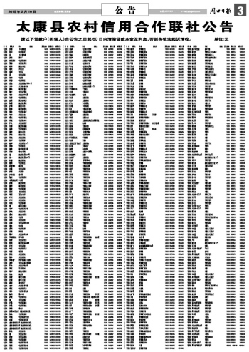 太康县农村信用合作联社公告