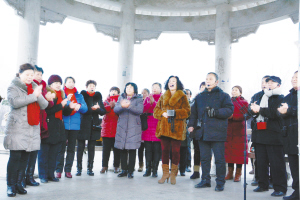 每天清晨,在川汇区滨河公园的红歌亭下,总有一群人在引吭高歌。这个合唱团是由川汇区退休教师赵其盈创办的,成立于2008年,最多时团员有100多人。几年间,川汇区红歌亭合唱团的歌声越唱越响。不仅如此,他们还热心公益事业,经常到敬老院开展送温暖、献爱心活动。理效明 摄