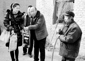 节前送温暖,真情暖人心。2月10日上午,周口报业昌建地产有限公司总经理王甲寅一行代表公司全体员工,为淮阳县王店乡贫困户送去了慰问金、大米、食用油等物资,帮助他们过一个欢乐、祥和的新春佳节。“企业的发展离不开社会各界的支持,今后公司还会一如既往地把回馈社会、奉献爱心作为公司发展的一部分。”王甲寅说。 (记者 沈湛 摄)