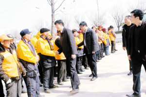 春节将至,县委书记杨永志、县长马明超分别带领四个班子领导先后到企业、医院、街道、消防队等,看望困难群众和坚守岗位的环卫工、医务人员和武警官兵等,送去新春的祝福、党和政府的温暖,并对辛勤工作一线的同志表示衷心感谢。图1为杨永志一行看望慰问县120急救中心医务人员,图2为马明超一行看望慰问环卫工人。(闫俊岭 张晓黎 摄)