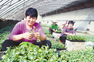 上图 人勤春来早。扶沟县现代农业蔬菜园区的大棚内,人们正在嫁接蔬菜苗,为早春生产备足种苗。(谷志方 摄)