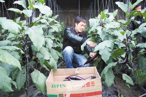 左图 临近春节,项城市贾岭镇吴老庄村的一座座蔬菜大棚里春意盎然,茄子、辣椒等蔬菜进入收获期,菜农忙碌着将鲜嫩的瓜菜装箱过秤销往各地。该镇注重农业结构调整,通过帮助农民实施土地流转,对棚菜区优先安排水、电等农业设施,积极引导发展优质高效温棚瓜菜,带富了一方群众。(张永久 摄)