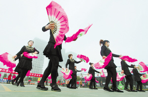 ① 2月16日,东新区搬口办事处搬口村与梁寨村在市体育中心联合举办“新年运动会”。近百名村民纷纷登场,参加包括篮球、扇子舞等多个项目的比赛,洋溢着运动的激情和过年的快乐。(记者 金月全 摄)
