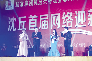 2月14日晚,沈丘县首届网络春晚在县综合体育馆盛装开演。晚会现场,网络明星与草根艺人齐上阵,网络热词与本土文化激情碰撞,为观众和网友们奉上了一道丰盛的文化盛宴。(通讯员 李春丽 摄)