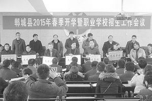 近日,郸城县对2014年职业学校招生工作先进单位和个人进行了表彰,对汲水中心校等3所中心校,双楼一中等22所初中和50名教师进行表彰,分别颁发了3000元、2000元、1000元不等的奖金、奖匾和证书。