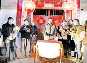 连日来,扶沟县韭园镇群众以挑花篮、跳广场舞、敲盘鼓、扭秧歌、舞狮等形式,欢庆元宵佳节。图为该镇文明新村——太尉铺村群众在敲盘鼓。 (张力友 潘晓康 摄)