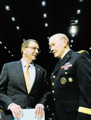 美国防部长说削减国防预算将危害国家安全 3月3日,在美国首都华盛顿,美国国防部长卡特(左)和美军参谋长联席会议主席邓普西准备在参议院2016新财年国防预算听证会上作证。美国国防部长卡特3日说,2016年国防预算减支将对美国国家安全造成威胁。 本栏目文图均据新华社电