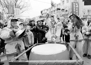 图1:元宵佳节,舞龙舞狮、锣鼓秧歌,丰富多彩的民俗展演活动,令人目不暇接,我市人民沉浸在一派欢乐祥和的节日氛围中。图为市民敲锣打鼓,喜庆元宵。