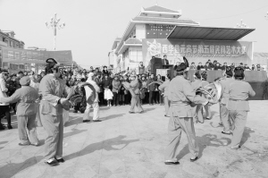 3月6日上午,西华县元宵节第五届民间艺术大赛在该县人民广场举办,来自全县的31个民间艺术组织参赛,田口乡陵西村皇陵腰鼓队代表田口乡参加并获奖。图为陵西村皇陵腰鼓队正在为观众表演节目。 (董小艳 摄)