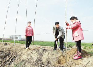 左图 昨日,扶沟县大李庄乡高河沿村的群众正在植树。植树节来临之际,该县各乡镇切实抓好以查漏补缺为主的植树造林和美丽乡村绿化工作,扎实有序推进生态县建设。(黄金峰 周运动 摄)
