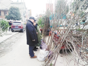 上图 昨日上午,一位市民正在挑选果树。又是一年春来到,众多市民纷纷趁早春时节种植树木。