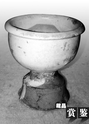 高足杯及高足碗至目前,仍没有确切的产生时间。陈德富《古陶瓷收成与鉴赏》说:“高足碗是蒙古族文化影响的一种极具时代特征的陶瓷器,元以前是见不到的。明、清时期则作为中华文化的一种传统而被继承、延续下来。”王莉英《陶瓷器鉴赏与收藏》说:“文献记载五代有高足碗。实际上五代时并无高足碗,有在碗心里印‘高足碗’三字者,但足很低。元瓷多见高足碗。”上述两本书里明确说元代以前的陶瓷中没有该器形。可是铁源主编的《古代民窑陶瓷》则以实物彩图分别列出了唐、宋、金时期高足杯(碗)的存在。