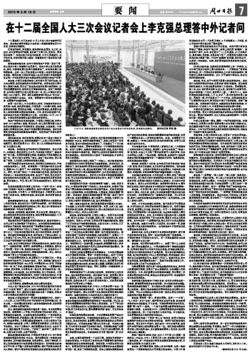 在十二届全国人大三次会议记者会上李克强总理答中外记者问