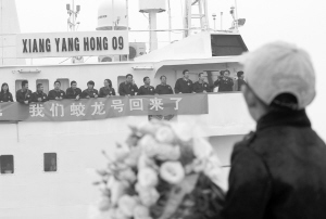 3月17日,“蛟龙”号载人潜水器在西南印度洋完成2014~2015年“蛟龙”号试验性应用航次(中国大洋35航次)科考任务后,搭乘母船靠泊国家深海基地码头。这是“蛟龙”号正式入驻其业务化运行单位,标志着“蛟龙”号业务化运行的陆基保障条件已基本具备。