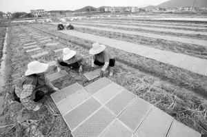 江西早稻集中育秧备春耕 3月22日,在江西省都昌县蔡岭镇东平村,农民在水稻育秧点上摆放秧盘。阳春三月,气温回暖,江西省都昌县以村(组)、种粮大户等为育秧主体,忙着集中育秧,提高早稻生产集约化、专业化水平,做好春耕备耕工作。 新华社发