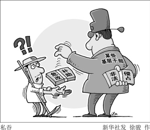 ——巧立名目索取“好处费”。“手续费”“辛苦费”“跑腿费”“照相费”……基层干部往往罗织各种名目向农户索取钱物。