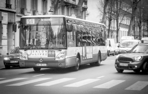 3月21日,一辆公交车行驶在巴黎市区的街道上。由于法国首都巴黎以及北部部分城市连日来的雾霾迟迟不散,巴黎将于23日当天实施紧急交通限行措施。新华社记者 陈晓伟 摄