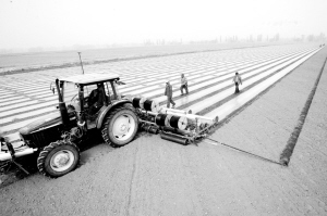 新疆塔里木盆地陆续开始棉花春播 3月25日,新疆生产建设兵团第二师二十九团的大型播种机在播种棉花。日前,新疆塔里木盆地各垦区农民抓住气温回升、土壤墒情好的有利时机抢播棉花,棉花产区的春播工作由南向北陆续展开。 新华社发