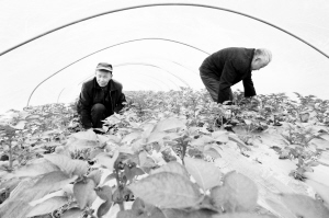 3月27日,商水县城关乡双庙村菜农正在大棚内管理土豆苗。春回大地,春管繁忙。眼下,商水县农民不失时机对小麦追肥、施药、中耕,对大棚蔬菜强化管理,力争今年有个好收成。(刘飞 魏红 摄 )