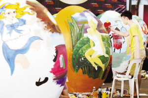 绘彩蛋迎复活节 3月26日,菲律宾奎松城举行巨型复活节彩蛋绘画比赛,参赛者绘制多种多样的童话人物于彩蛋上,以迎接4月5日将到来的复活节。