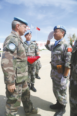 当天,中国第十三批赴黎巴嫩维和部队官兵被授予联合国“和平荣誉勋章”,以表彰他们在黎南部维和行动中所作出的贡献。