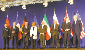4月2日,在瑞士洛桑,伊核问题六国、欧盟和伊朗的代表准备发表共同声明。伊核问题六国(美国、英国、法国、俄罗斯、中国和德国)、欧盟和伊朗2日晚在瑞士洛桑发表共同声明,宣布各方已就伊核谈判主要焦点问题达成框架性解决方案,并将立即着手协议文本起草工作。 新华社发