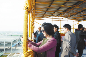 3月29日,参加2015年“5+2”经济合作活动的30多名外地客商集中观摩川汇区工业、商贸项目,并对川汇区亮点纷呈的项目建设赞誉有加。图为外地客商正在拍摄规模宏大的华耀城项目。理效明 刘巍 摄
