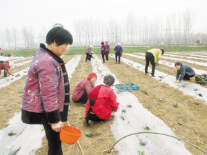周营乡积极调整种植结构,因地制宜发展高效农业种植,引导群众搞小弓棚西瓜种植,亩均收入6000余元。4月2日,该乡王寨村农民正移栽西瓜苗。